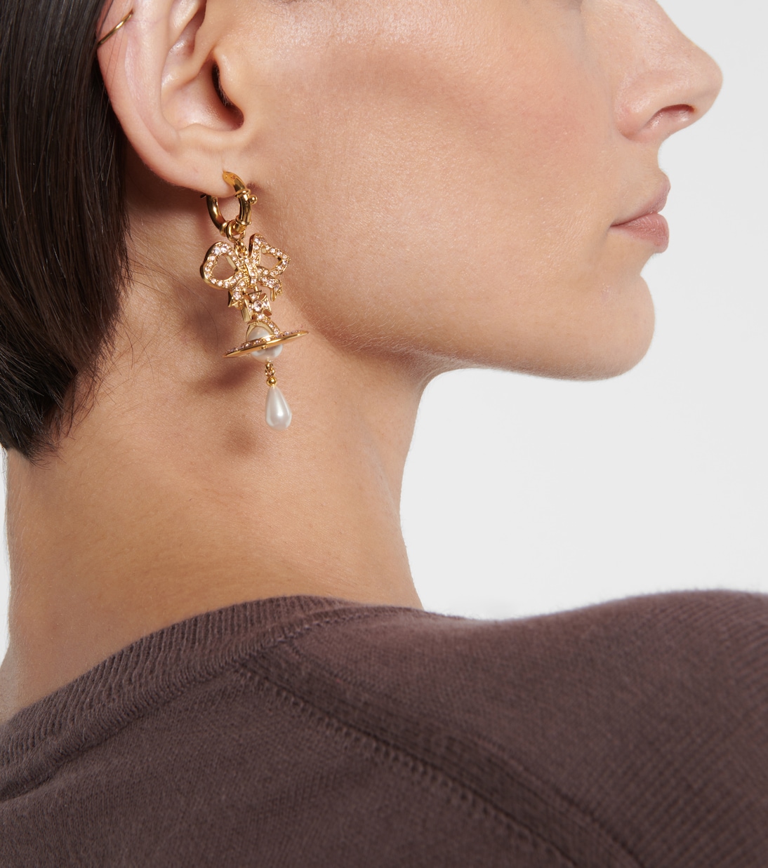 2 Colors RIGOBERTA Pearl Bow Saturn Earrings